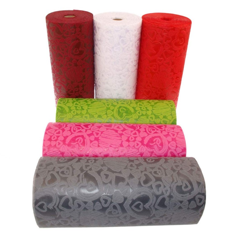 Dekoflor Table Runner, Table Decoration, Unique Heart Design (Waterproof, Lotus Effect, Velvety Surface, 25 m Roll, 30 cm Width, 100% Nylon), Bordeuax
