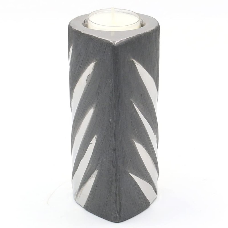 Dekohelden24 213310 Modern Decorative Designer Ceramic Tea Light Holder in Silver/Grey Dimensions L x W x H 7 x 9 x 14 cm Tea Light Holder 14 cm