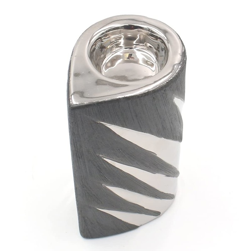 - Elegant modern decorative designer ceramic tea light holder in silver-grey. The stylish tea light holder spreads a warm, elegant and cosy atmosphere.