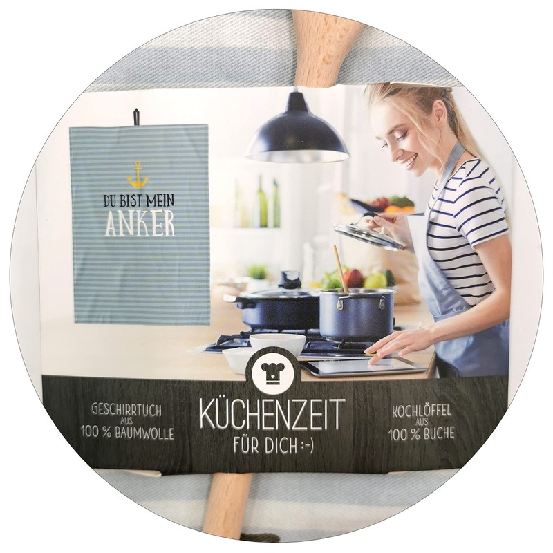 - They are an original and sustainable gift for moving into a new apartment, as a thank you for a delicious meal, or just because. The natural beech wood of the spoon and the cotton of the tea towel are particularly gentle on cookware.