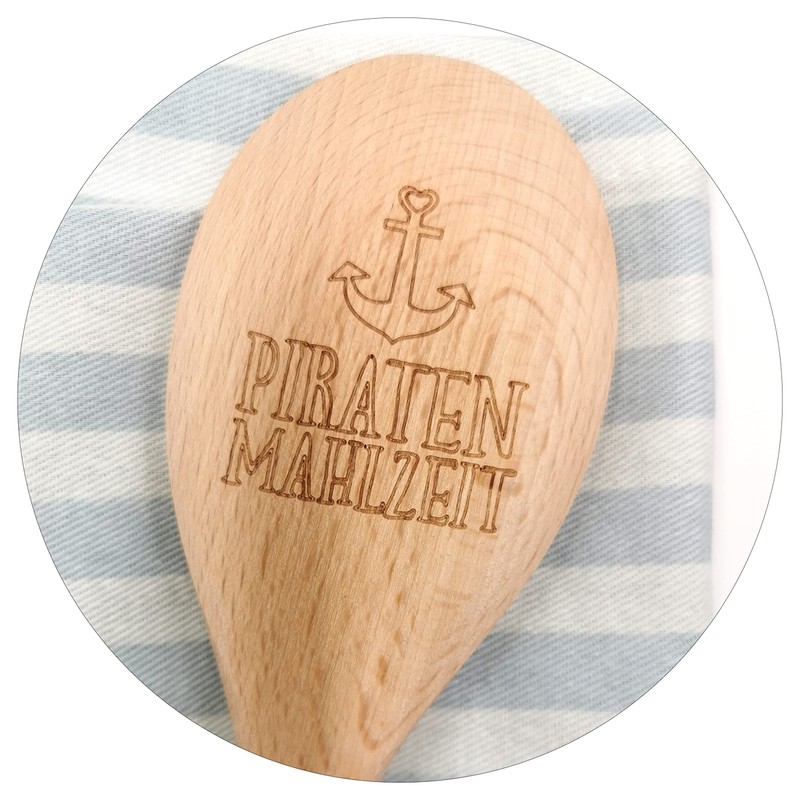 Dekohelden24 gift set, tea towel made of 100% cotton and beech wood cooking spoon with inscription, motif: Pirate Meal (Piraten Mahlzeit), wood, anchor