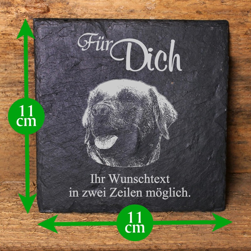 Dekolando Schiefer Untersetzer personalisiert Labrador - Für Dich - 11x11cm Schwarz Bierdeckel Tischdeko Bieruntersetzer Weinuntersetzer