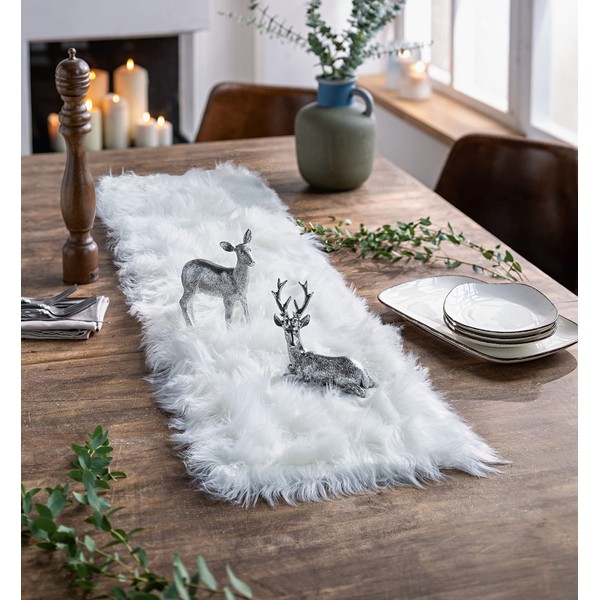 Dekoleidenschaft Faux Fur Table Runner in Cream/White, 30 x 120 cm