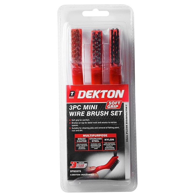 Dekton 3PC Mini Wire Brush Set | Includes 3 Mini Wire Detailing Brushes | Brass Coated for Spark Plugs | Steel for Rust & Paint Removal | Nylon for Upholstery & Detailing | Versatile