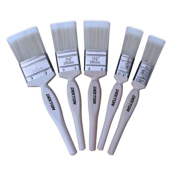Dekton 5pc Professional Grade Paintbrush Set - Ideal for Water-Based Gloss Emulsion Paints| Includes 3 Brushes 2(38mm), 2(50mm), 1(76mm)| Quality Bristles| Set Ensures Smooth, Precise Application