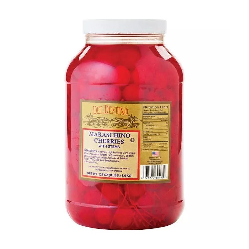Del Destino Maraschino Cherries with Stems, 128 oz