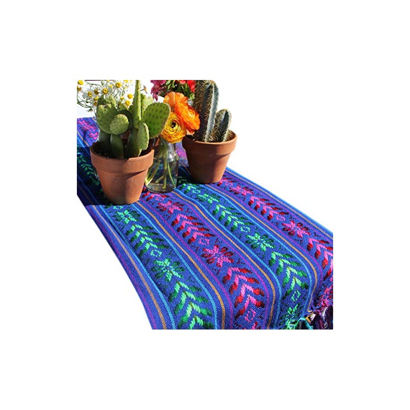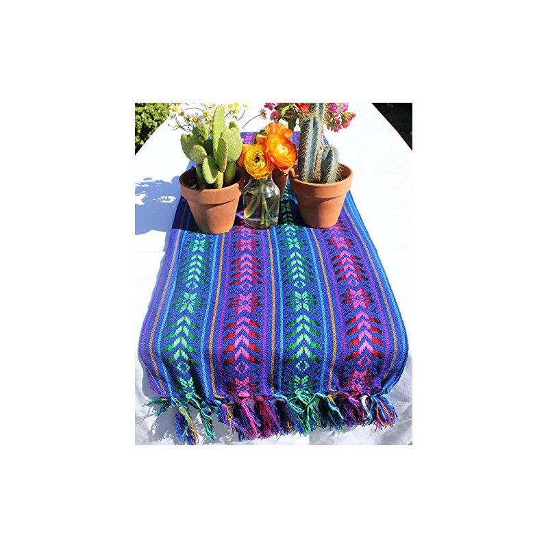 Del Mex Woven Rebozo Style Mexican Table Runner Scarf (Blue)