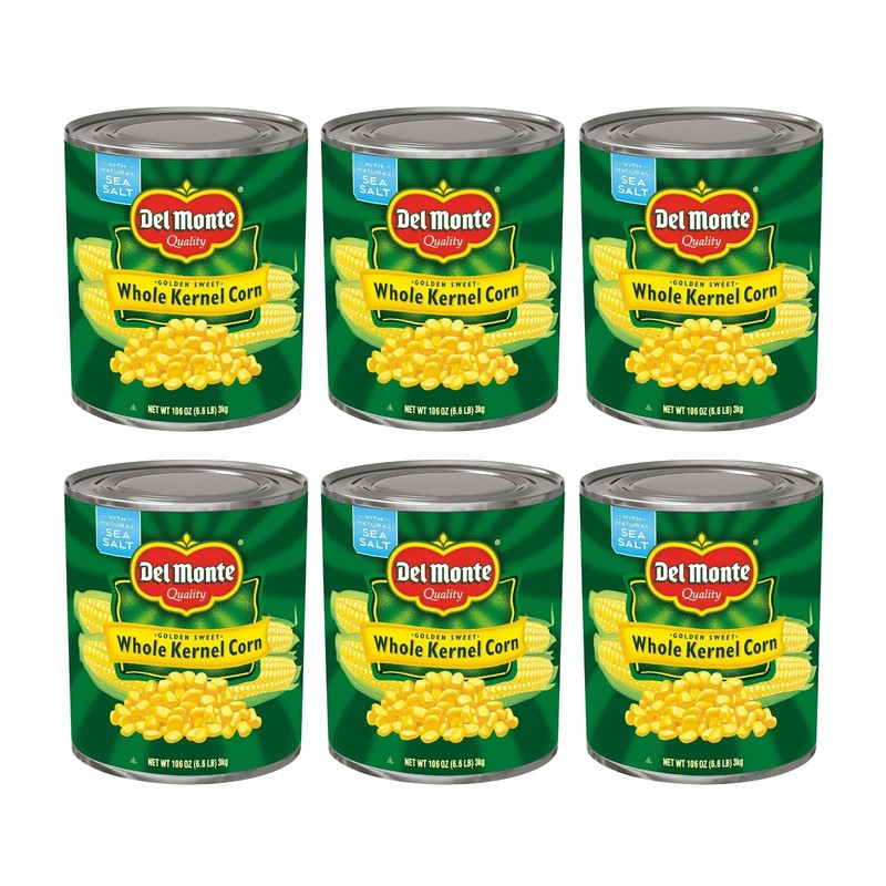 DEL MONTE Golden Sweet Whole Kernel Corn, Canned Vegetables, 6 Pack, 106 oz