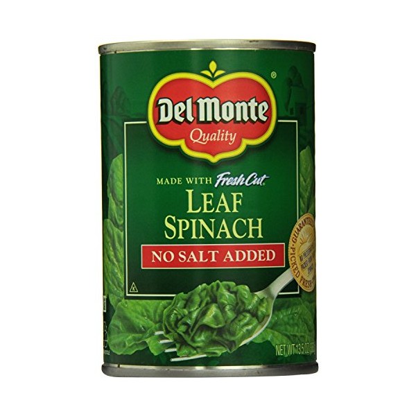 Del Monte No Salt Added Leaf Spinach 13.5 oz Cans (Pack of 6)