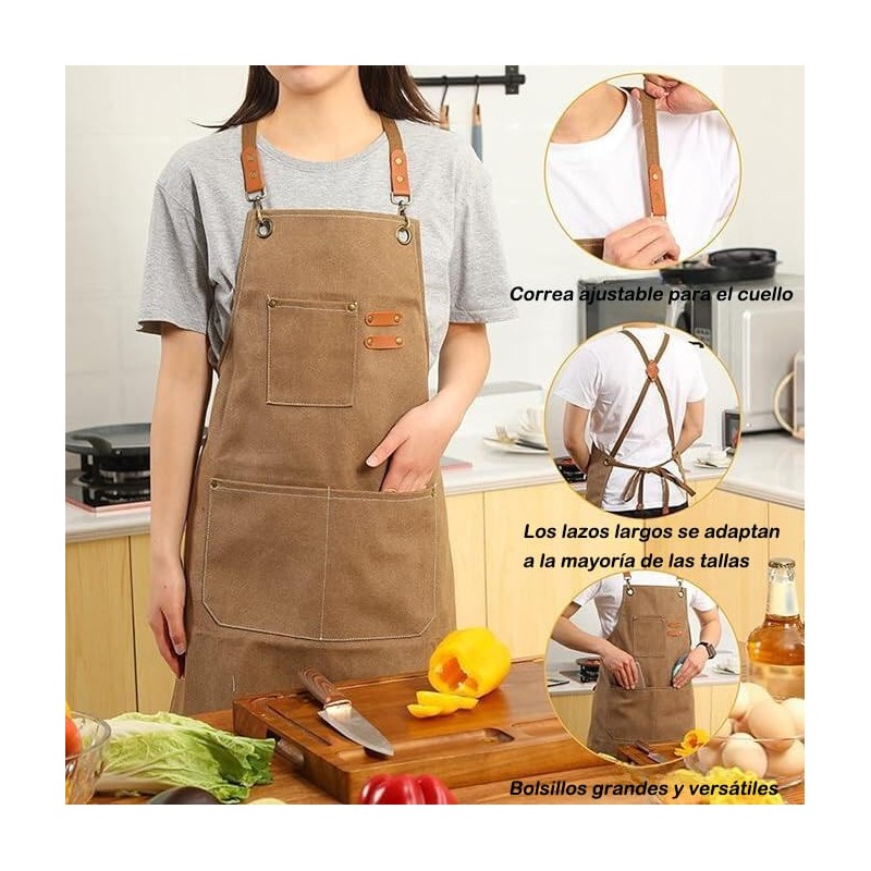 - ✅【Duradero Delantal de Cocinero Impermeable】 Delantal de lona de algodón está hecho a mano de 100% algodón suave, sin olor, protección del medio ambiente. Con exquisita hebilla de hardware, y las esquinas de bolsillo están reforzadas con remaches de metal, delantal duradero.