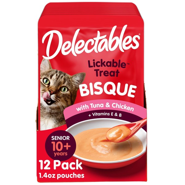 Hartz Delectables Bisque Lickable Wet Cat Treats with Tuna & chicken, Senior Cats 10+ years, 1.4 Ounce (Pack of 12) - Packaging May Vary