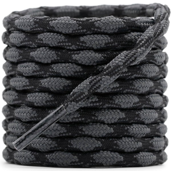 DELELE 2 Pair Round Wave Shape Non Slip Heavy Duty and Durable Outdoor Climbing Shoelaces Dark Gray&Black Hiking Shoe Laces Shoestrings-51 inch