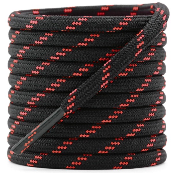 DELELE Round Work Boot Laces: 55 inch Black Red Heavy Duty Hiking Shoe Laces for Boots 2 Pair