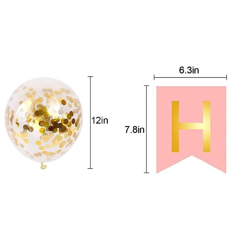 - STANDARD PACKAGE - Size of happy birthday banner :11.5cm × 9.5cm, balloon diameter 12 inches.