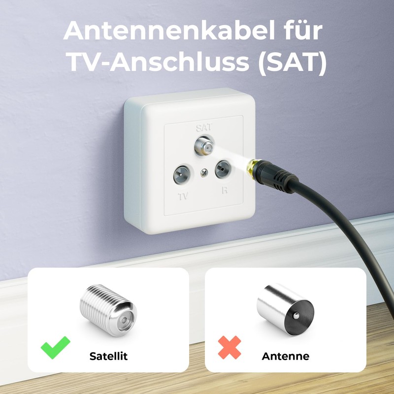 The deleyCON SAT TV antenna cable satellite cables can be used on all devices that have a coaxial F connector antenna cable connection.