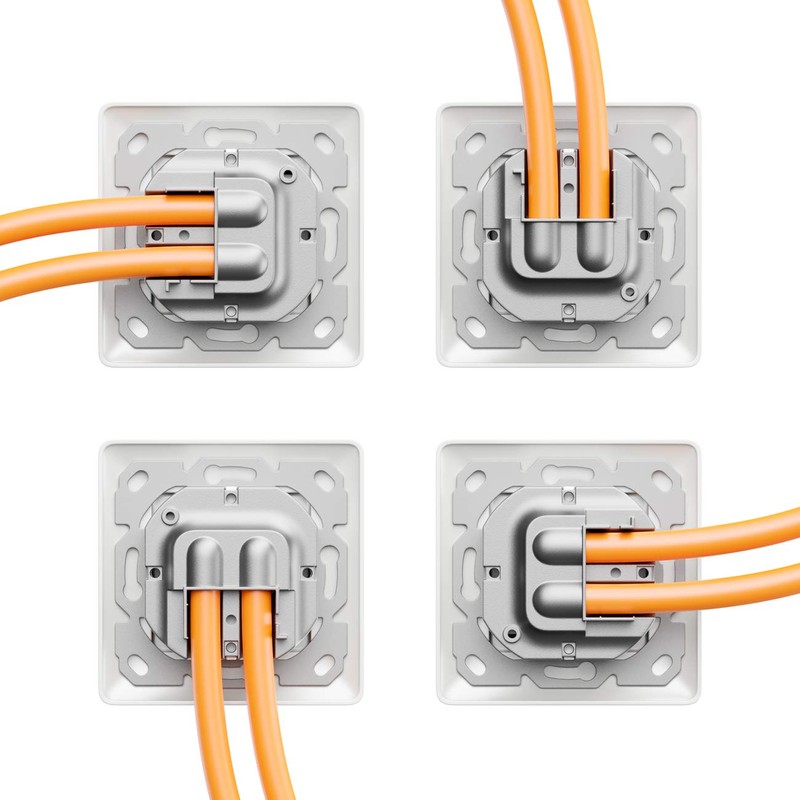 Our network socket is equipped with two RJ45 sockets and supports 10 Gbit Ethernet. The cable entry is possible in 4 steps (360°), which allows flexible installation.