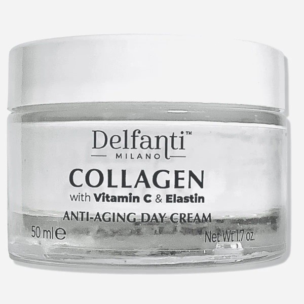 Delfanti-Milano • COLÁGENO con VITAMINA C & ELASTINA • Esculpir y levantar • Crema de día antienvejecimiento • Hidratante facial y cuello • Hecho en Italia