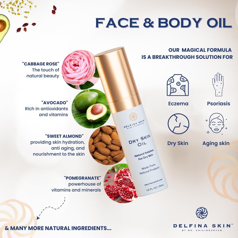 Delfina Dry Skin Oil - Eczema Psoriasis Treatment for Skin | Fast Absorbing and More Effective than Lotion for Extremely Dry Cracked Irritated Skin | Safe for All Ages