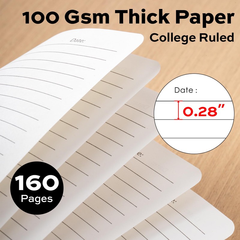- 100 GSM Ink-friendly Paper: Deli Notebook Journal is made of 100 GSM high-quality acid-free paper, thick and durable, ensuring no ink bleed or ghosting when writing, and suitable for all kinds of pens (e.g., fountain pens, ballpoint pens, and markers). The light ivory-colored paper reduces eye fatigue and enhances comfort during long writing sessions, supporting double-sided writing for increased space. Each notebook has 160 pages, providing ample space for writing or creating. The paper is carefully designed to prevent ink bleed-through, even with fountain pens, making it perfect for everyday note-taking, journaling, planning, and drawing.