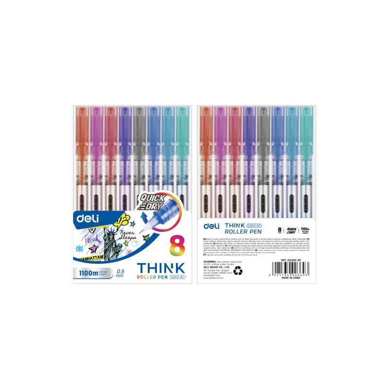 deli 8 0.5mm Color Rollerball Pen/Coloured Ballpoint Pens EQ300-8C