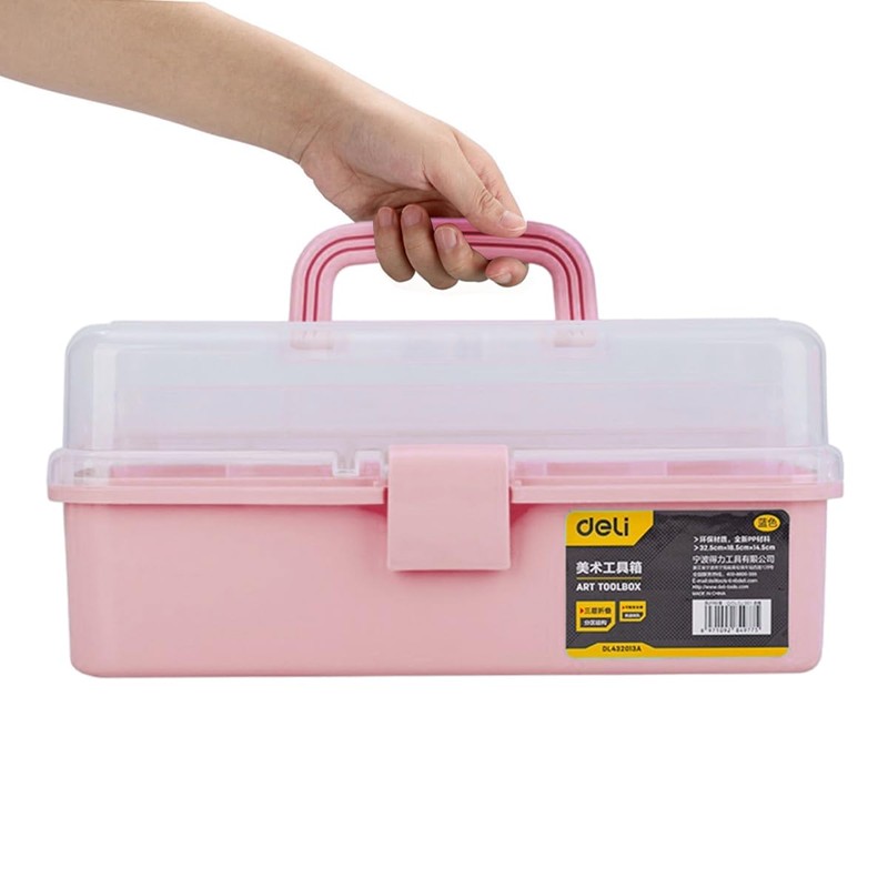 deli Art Supply Organizer, Pink Plastic Tool Box with Handle, 13 in Craft Storage,Sewing Supplies Organizer,Hair Accessory Organizer