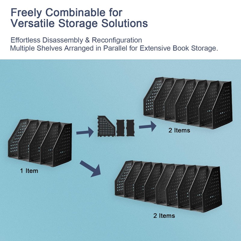 • 【Collapsible Magazine File Holder】This binder storage rack is very space saving, allowing you to freely adjust according to your needs and use one, two, three, or four compartments at will.