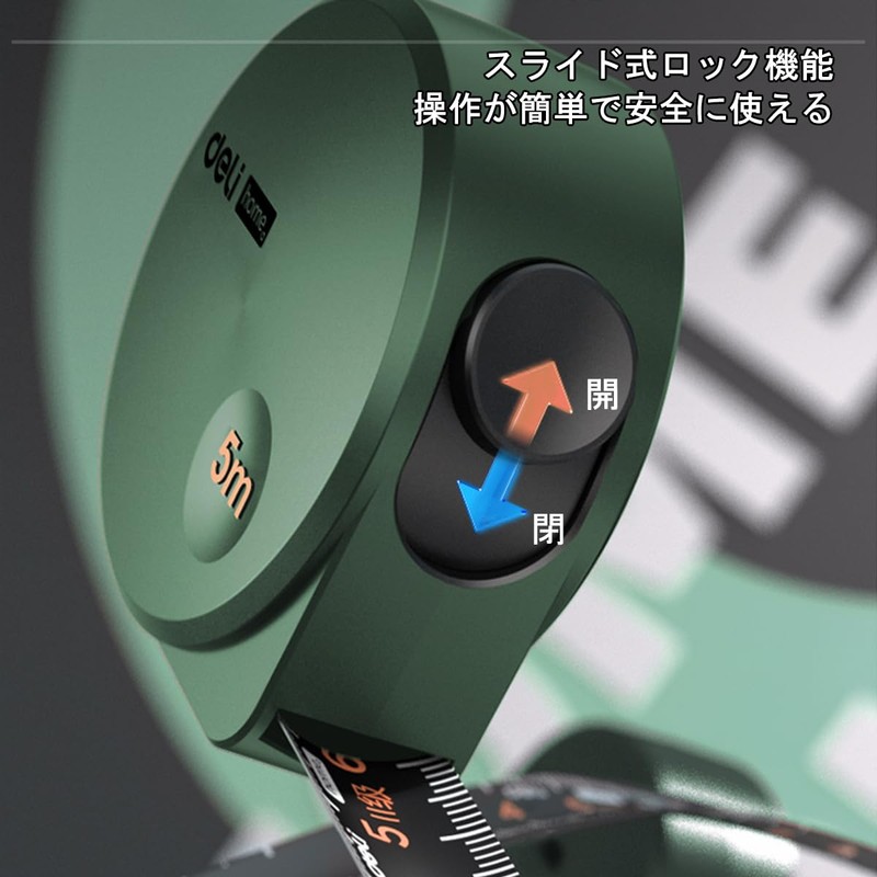 Deli Tape Measure Steel Tape Measure Specifications: 1.6 x 0.7 inches (5 x 19 mm) Large Letters Easy to See Scale Prevents Handcuts High Precision High Hardness Engineering Tape Waterproof Abrasion Resistant Drop Resistant Site Measurement Indoors Furniture Size Measurement Drawing DIY Project Measuring Tools Home Tape Compact (Green, 5 x 19 mm)