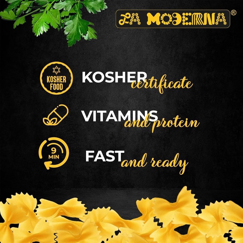 This Bow Tie Pasta is perfect for families seeking a fun and tasty option at every mealtime. Its unique shape makes it ideal for dishes that will surprise both adults and children alike. Free from preservatives, fats, sugars, and cholesterol, with a low glycemic index, it's also suitable for diabetics. Cooking expands its volume, and with just 7 oz, you can create up