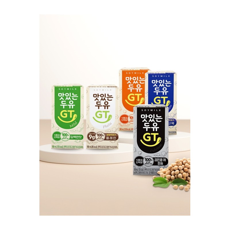 Delicious soymilk GT 5 types 190ml / 맛있는두유GT 5종 190ml X 24팩 (플레인담백달콤검은콩고단백)