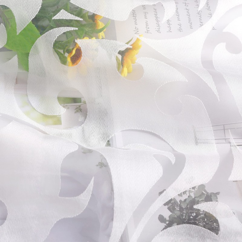 Delien Voile Burnout Curtain with Tendrils Pattern, Sheer Curtain with Ruffle...