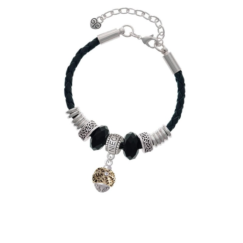 Delight Jewelry Goldtone Snowflake with Crystal Spinner - Niece Celtic Knot Leather Bead Bracelet, 7"+2" Extender