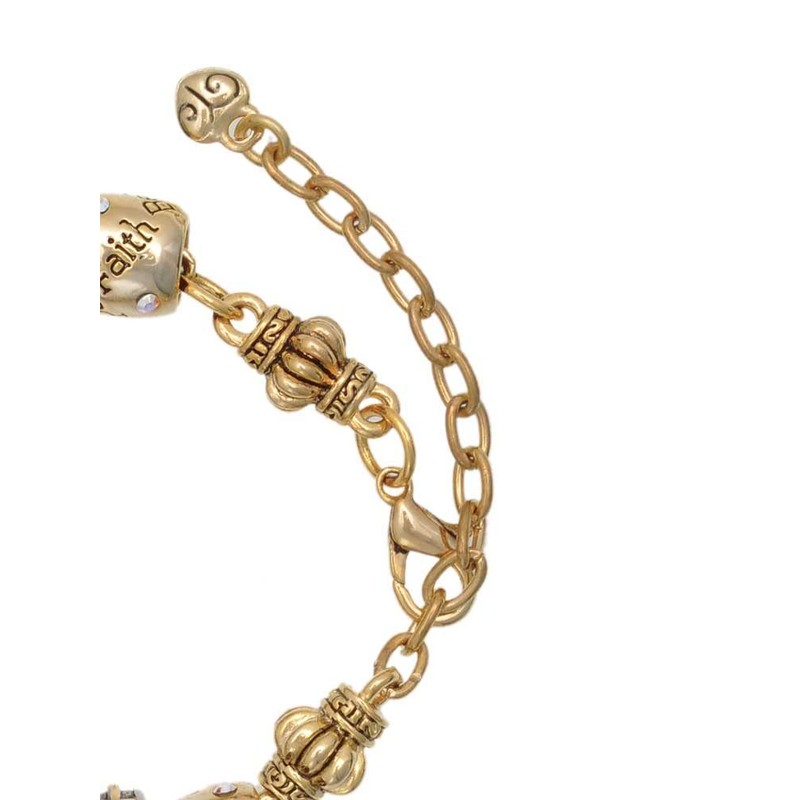 - Gold tone charm bead bracelet is 7 inches with 1.5 inch extender chain. Lobster Claw Clasp.