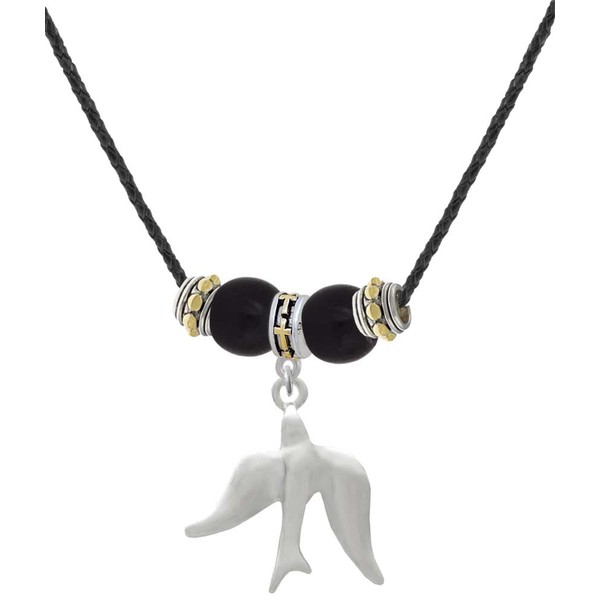 - Silvertone 3-D Dove - Two-tone Cross Black Beaded Necklace.