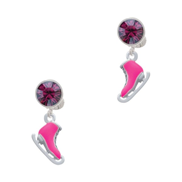 Delight Jewelry Silvertone 3-D Hot Pink Ice Skate - Large Purple Crystal Clip on Earrings