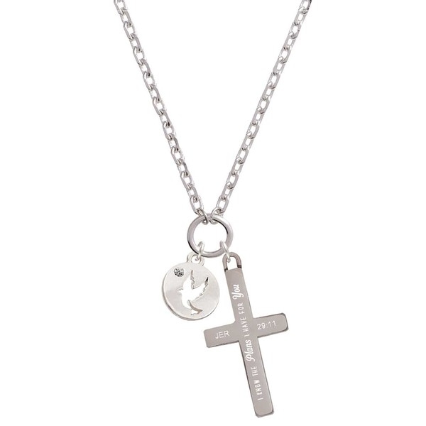 - Silvertone Dove Disc I Have Plans for You Engraved Cross Zoey Necklace, 28".