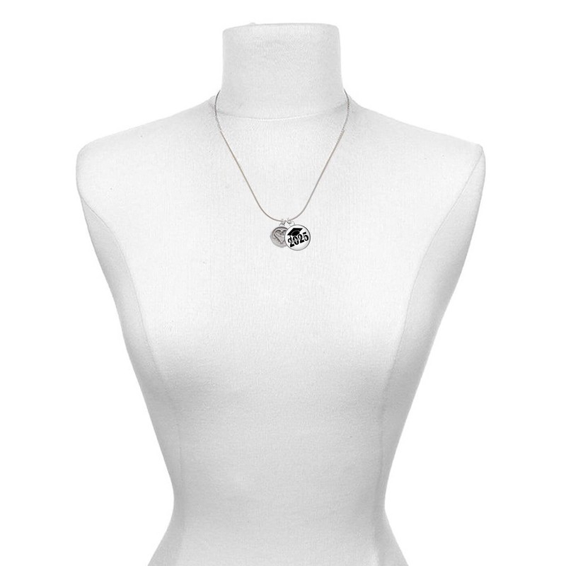 - Silvertone Heart Outline - Round Seal Script Class of 2025 Dome Charm Necklace, 18".