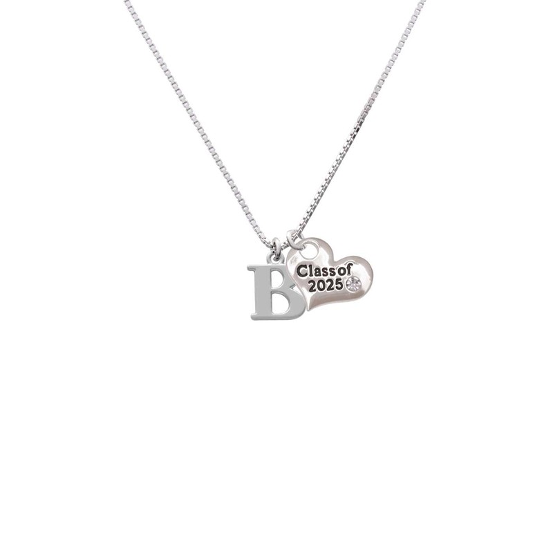 - Silvertone Large Initial - B Silvertone Class of 2025 Heart Charm Necklace, 18"+1" Extender.