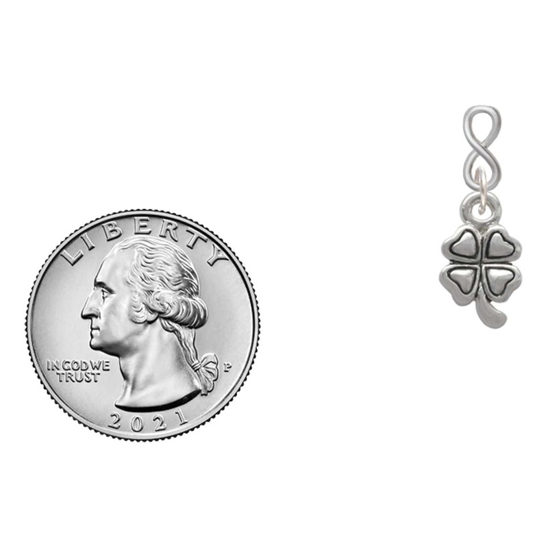 - Silvertone Infinity Post is approximately 8 x 5 x 2 mm (HxWxD) not including dangle charm.
