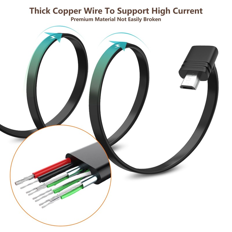 delilyn 25FT/7.5M Power Extension Cable Compatible with WYZE Cam Pan V3, 90 Degree Micro USB Extension Charging Cable for Your WYZE Cam Pan V3 Continuously, L-Shaped Flat Power Cord- Black