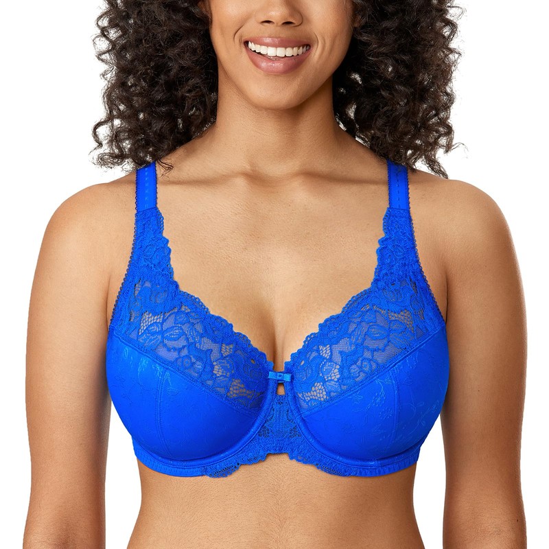 Delimira Women's Beauty Lace Non Padded Minimiser Full Figure Underwire Bra Sky Blue 40DD