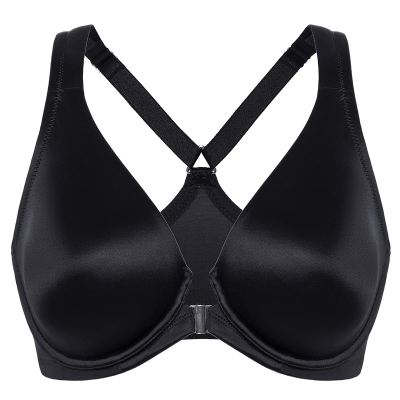 DELIMIRA Women's Front Closure Racerback Plus Size Seamless Full Coverage Underwire Unlined Bra Black 42C