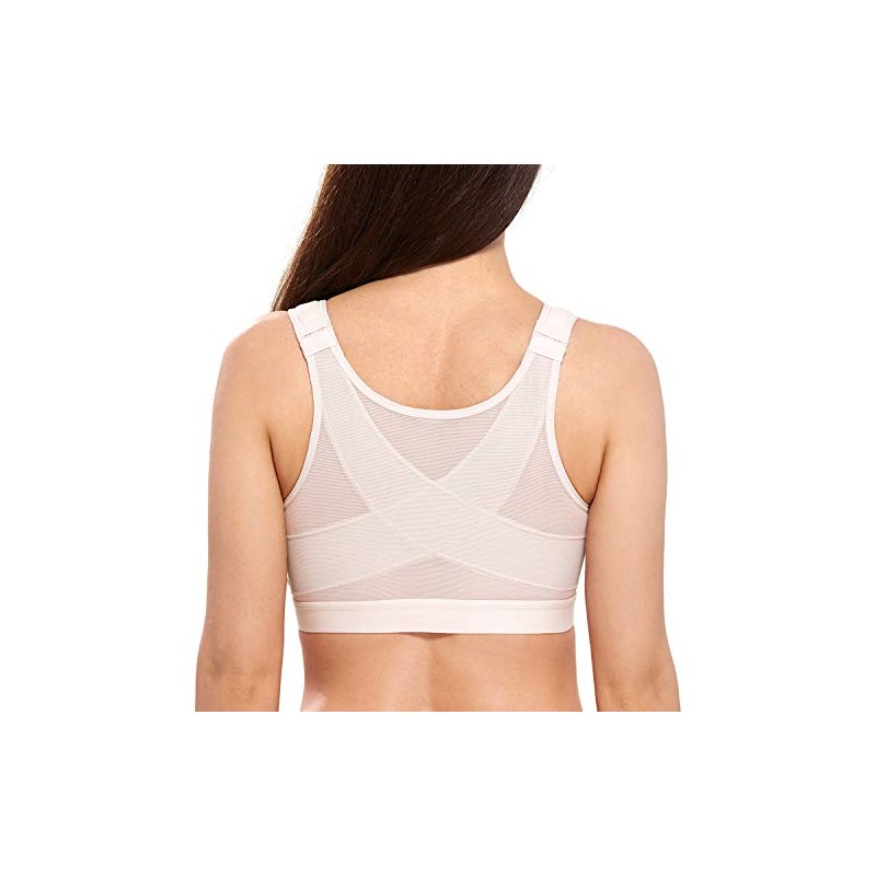 DELIMIRA Women's Full Coverage Front Closure Wire Free Back Support Posture Bra Rose White 46DD