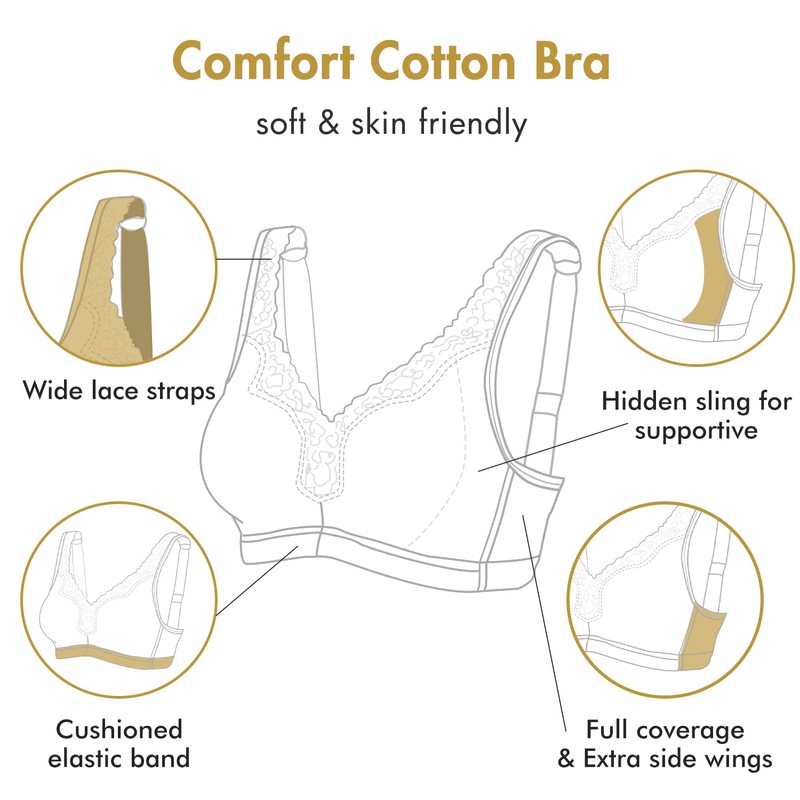 Delimira women's full cup relief bra, cotton, without an underwire, without padding, wide straps - beige Plain, size: 115C