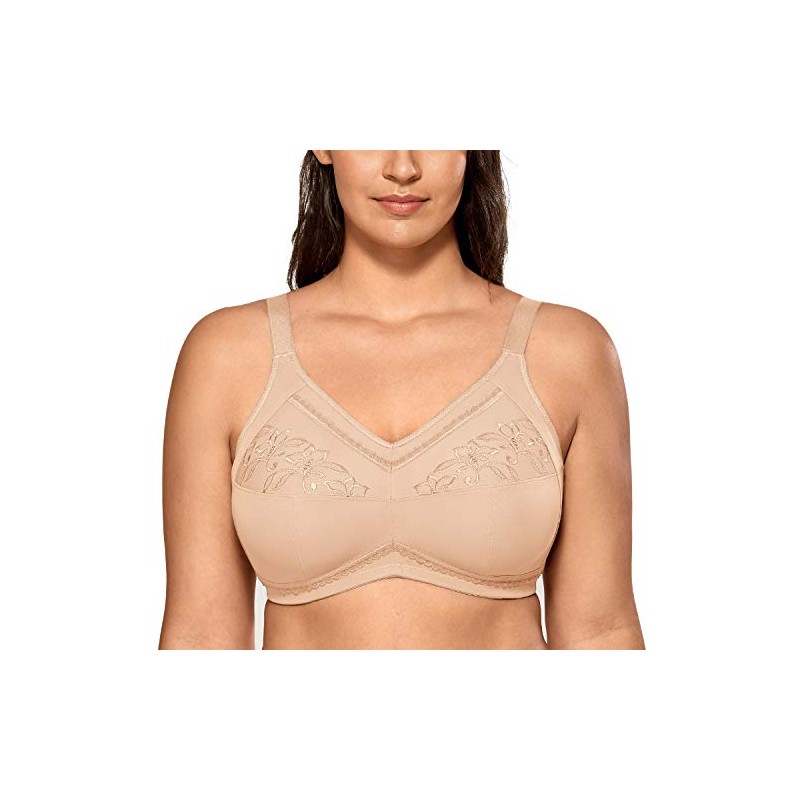 DELIMIRA Women's Mastectomy Pockets Wireless Post-Surgery Plus Size Cotton Sleep Bralette Bra Beige 40E