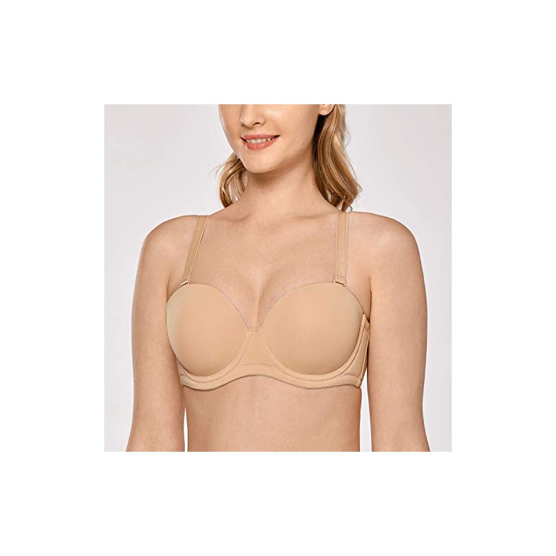 DELIMIRA Women's Underwire Contour Multiway Full Coverage Strapless Bra Plus Size Taupe Tan 40D