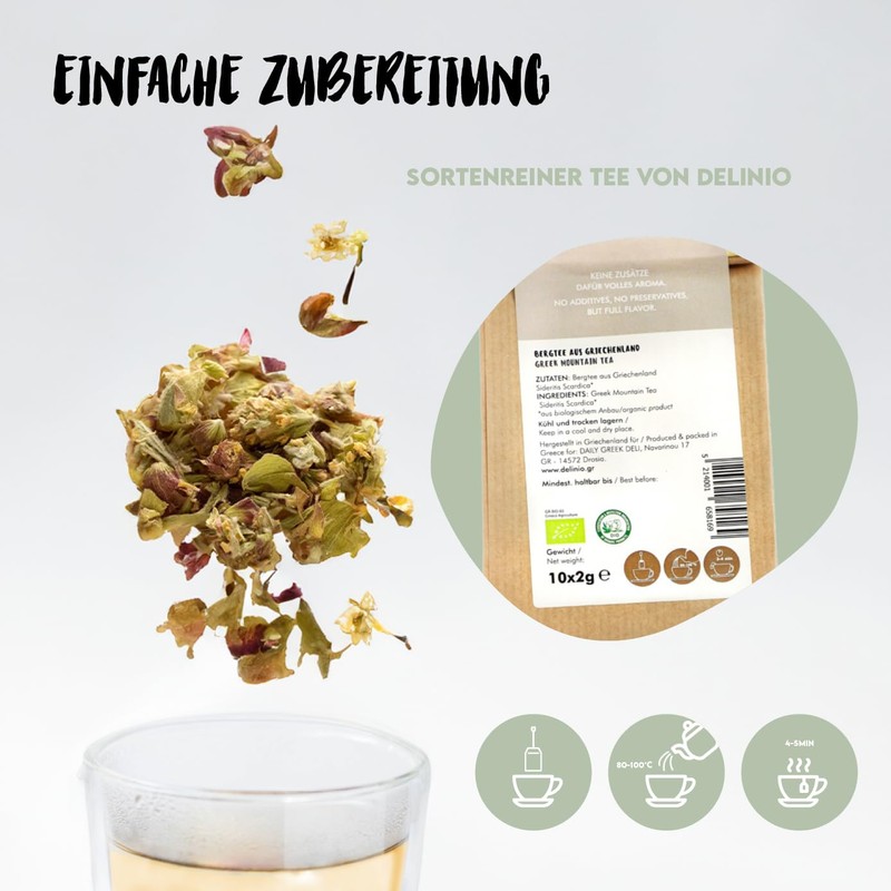 - [PREMIUM BIO BERGTEE AUS GRIECHENLAND] - Genießen Sie den hochwertigen Sideritis Scardica Tee von Delinio, der sorgfältig in der Region Elatochori, Pieria, Griechenland angebaut und handgefüllt wird. Erfreuen Sie sich an der natürlichen Qualität und dem authentischen Geschmack.