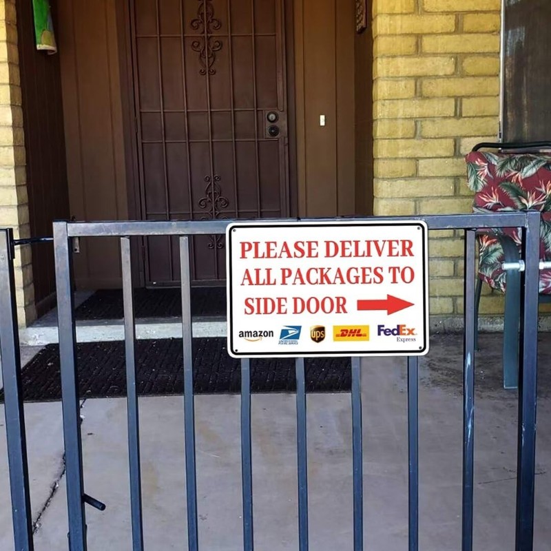 - Deliveries Warning Sign: Your driver will see 12x8 inches aluminum sign and know exactly where to deliver your packages without you having to give delivery instructions.