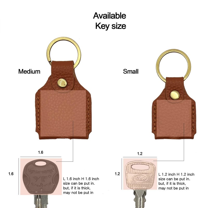 - Optional Size:There is two size for the genuine leather key cover to choose from.Small Size:1.6''(W)x1.3''(H),Medium Size:2''(W)x1.7'(H), please check the size chart and measure your key before purchasing.