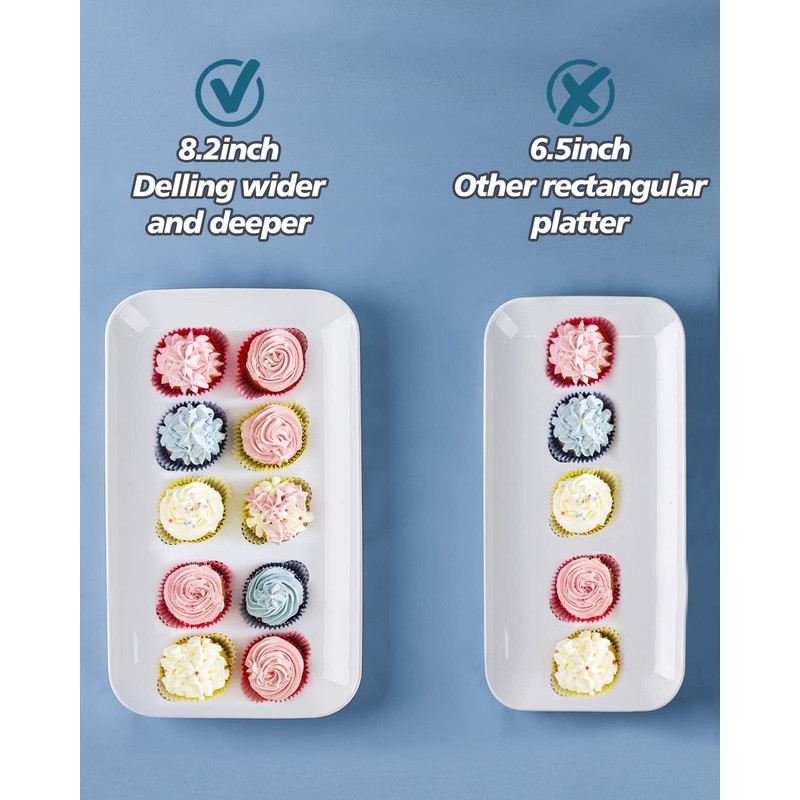 - Multiple Uses: Large Serving Platter satisfy all of your need during your daily life, perfect for variety of appetizers, sushi, desserts, and more with this white rectangular stoneware serving platter. Suitable for all kinds of cake, such as pie, cheesecake, dessert, ice cream cake, etc., classic white rectangular plates enough for all your entertaining needs
