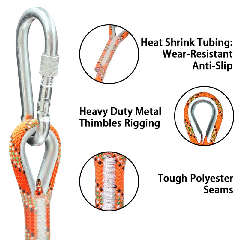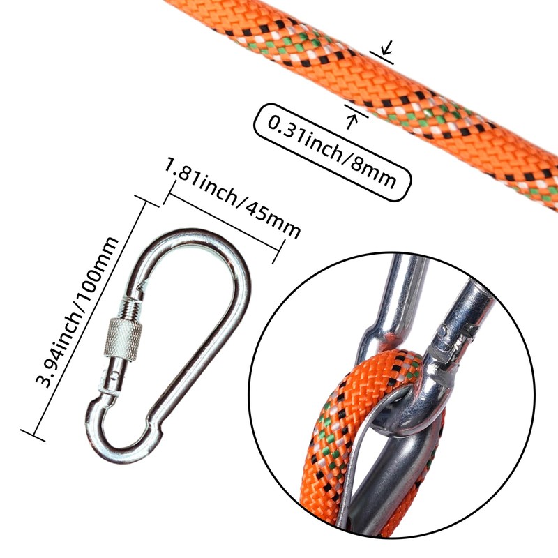 - Package includes 1 climbing rope, 2 heavy-duty carabiners, 1 anti-dust storage bag, and 2 pairs of non-slip gloves. Your satisfaction is our priority—if you're not completely happy with your purchase, feel free to tell us, and we will ensure you receive a satisfactory solution.